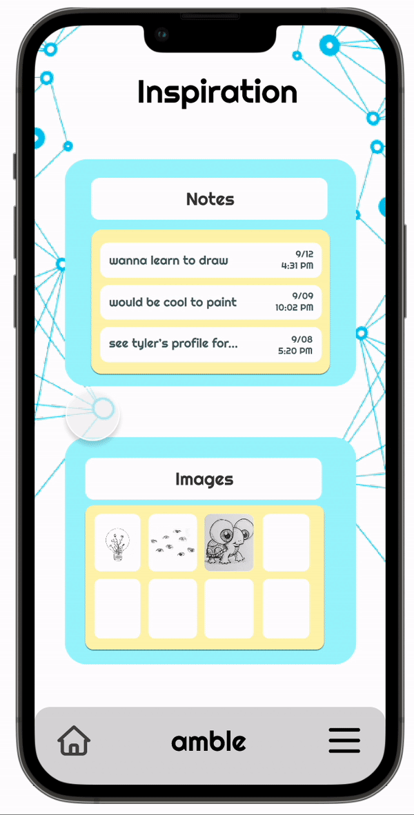 On January 2022, I collaborated with 3 Stanford students to create amble- a mobile application to explore your curiosities and unearth your creativity at your own pace.