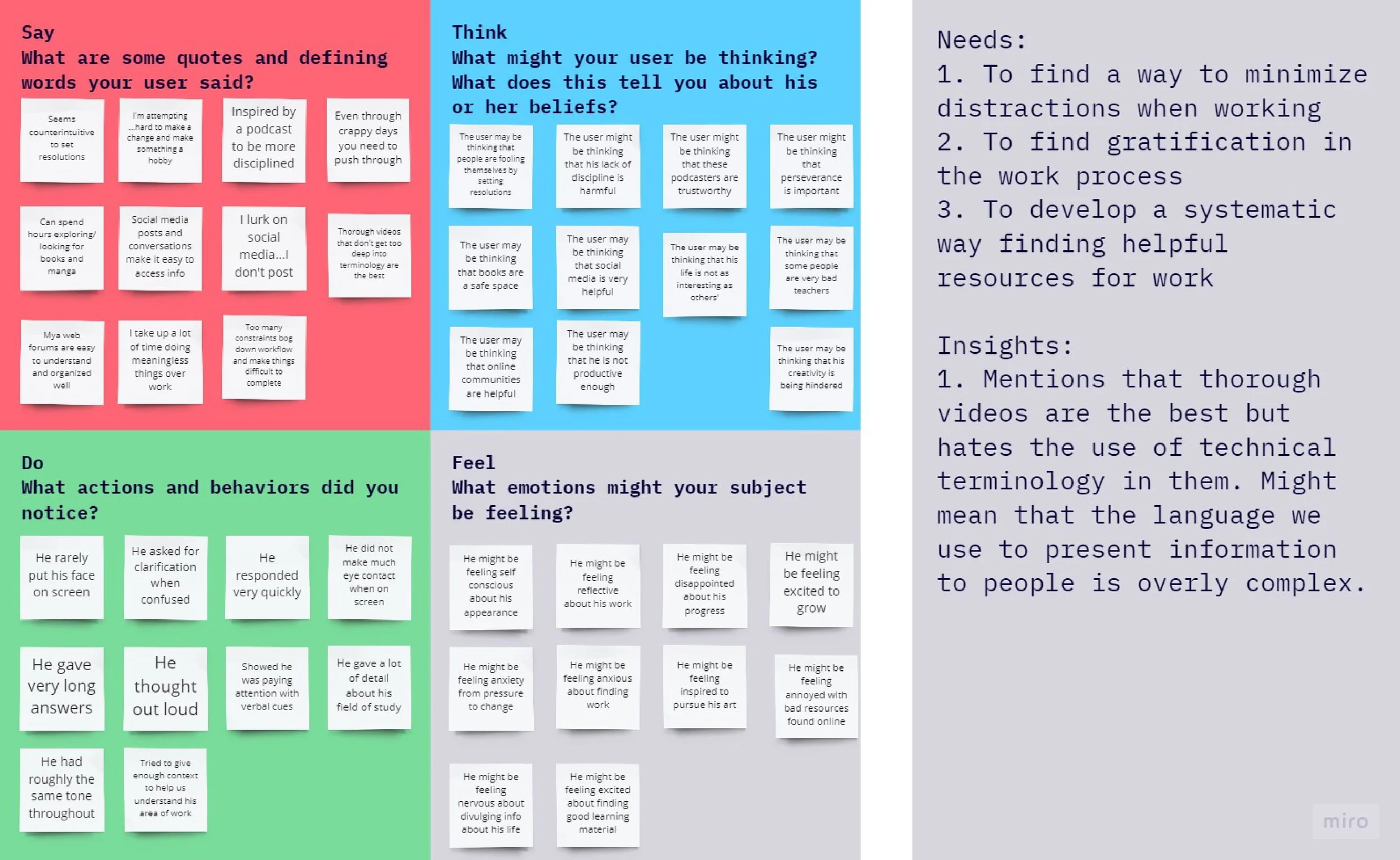 A recently graduated graphic designer who is about to begin his graphic design career. We were surprised to notice the short length of his responses. We wonder if this means he feels intimidated and unsure about his voice as a designer entering the design world. It would be game-changing to provide some sort of security blanket and confidence in his design.