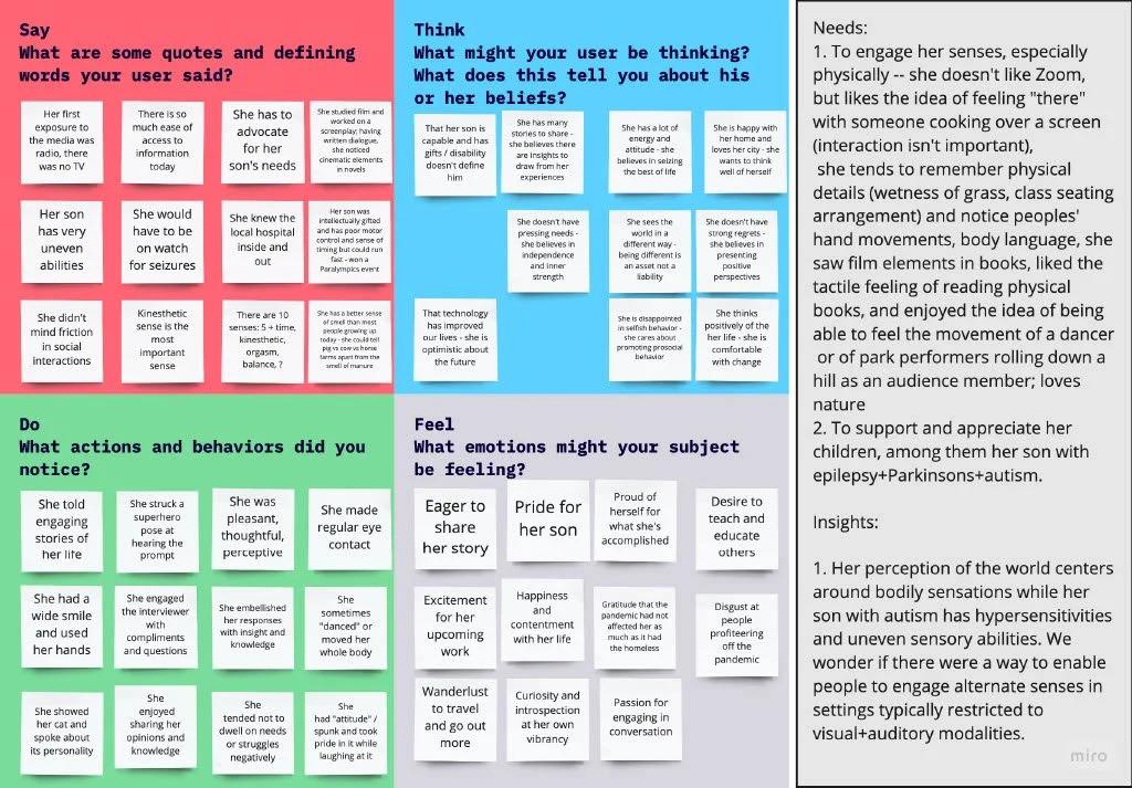 We conducted interviews with extreme users from different professional backgrounds (i.e. graphic designers, playwrights,, engineers, teachers), ages (20 - 75 years old), and sensical abilities (i.e. users with ‘heightened’ senses due to professions and inherent body abilities).
